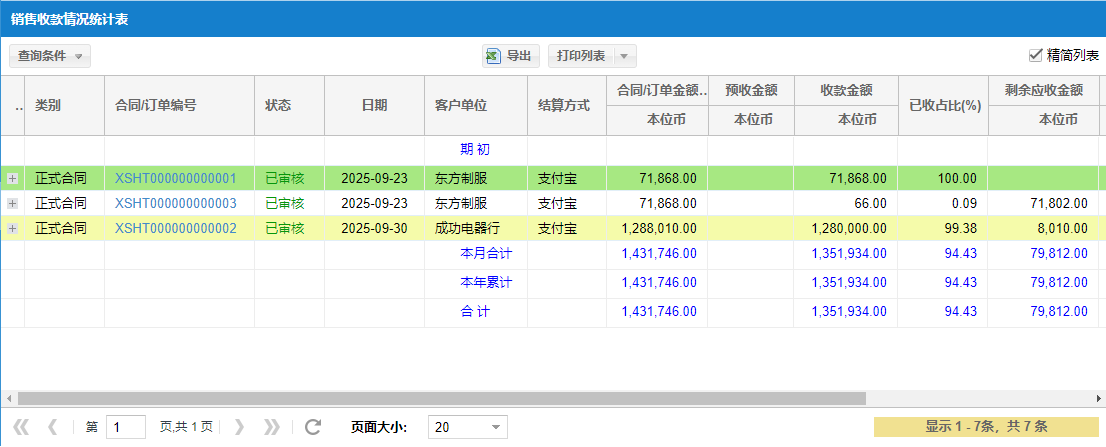 ⑥【报表】销售收款情况统计表