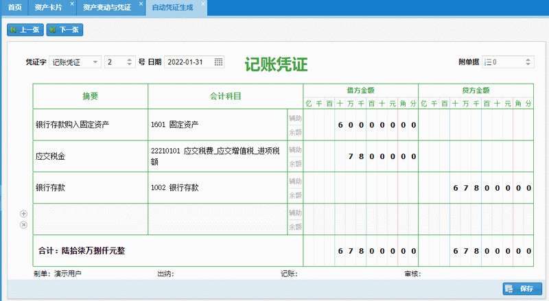 系统默认按照资产的增加、减少和部分增减,已设置好相应的变动会计分录。